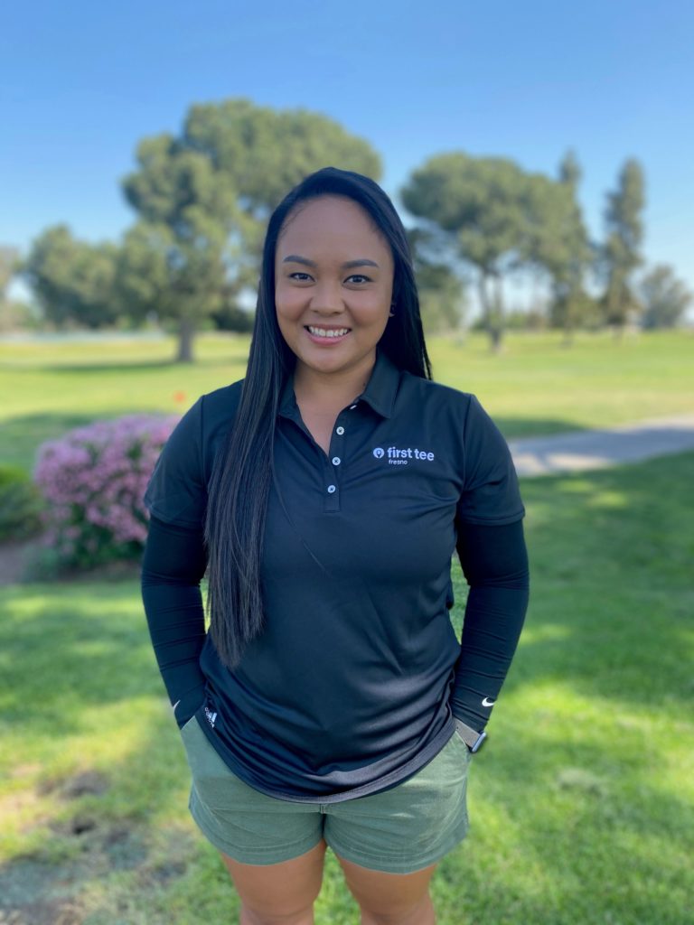 Megan Parayno, a Recognized First Tee Coach, began her First Tee career in 2014. For the past 7 years she’s been working to inspire and empower kids and teens, first as a lead coach for First Tee — Monterey County and now as the Program Director for First Tee — Fresno. In her free time, Megan follows her passion of being a self-proclaimed “sneakerhead and reseller” and is ready to be able to return to her weekly bowling leagues once it’s safe to do so. Coach Megan grew up in Fresno, CA and attended Cal State University Monterey Bay on a golf scholarship, majoring with a B.S. in Kinesiology. After graduating in 2016, she moved back to Fresno to take on the role of Program Director.  “It was a perfect opportunity to give back to the community that gave so much to me when I was growing up.” Since returning to Fresno, Megan has earned a Master’s in Sports Administration from Fresno Pacific University. “My favorite part of being a coach is building relationships.  Being able to see them grow up and watch them mature and become a mentor to younger kids is why I love coaching. On a personal note, I was able to witness my sister, Lauren, play the PURE Insurance Championship, be her chaperone, and watch how her game has developed over the years.” Coach Megan knows the importance of showing up for others and giving back to her family, friends, community and participants. “I had a First Tee parent come to me and she mentioned that her daughter was looking to speak with someone who related to her. Her daughter was struggling with finding herself.  All it took was a couple hours hitting golf balls on the range to show her that First Tee is a safe place for her to talk.  I had the ability and the resources to relate to her and understand what she is going through and took that time to “show up” for her. Coach Megan is giving her participants opportunities to show up in their community and learn the importance and impact of giving back.